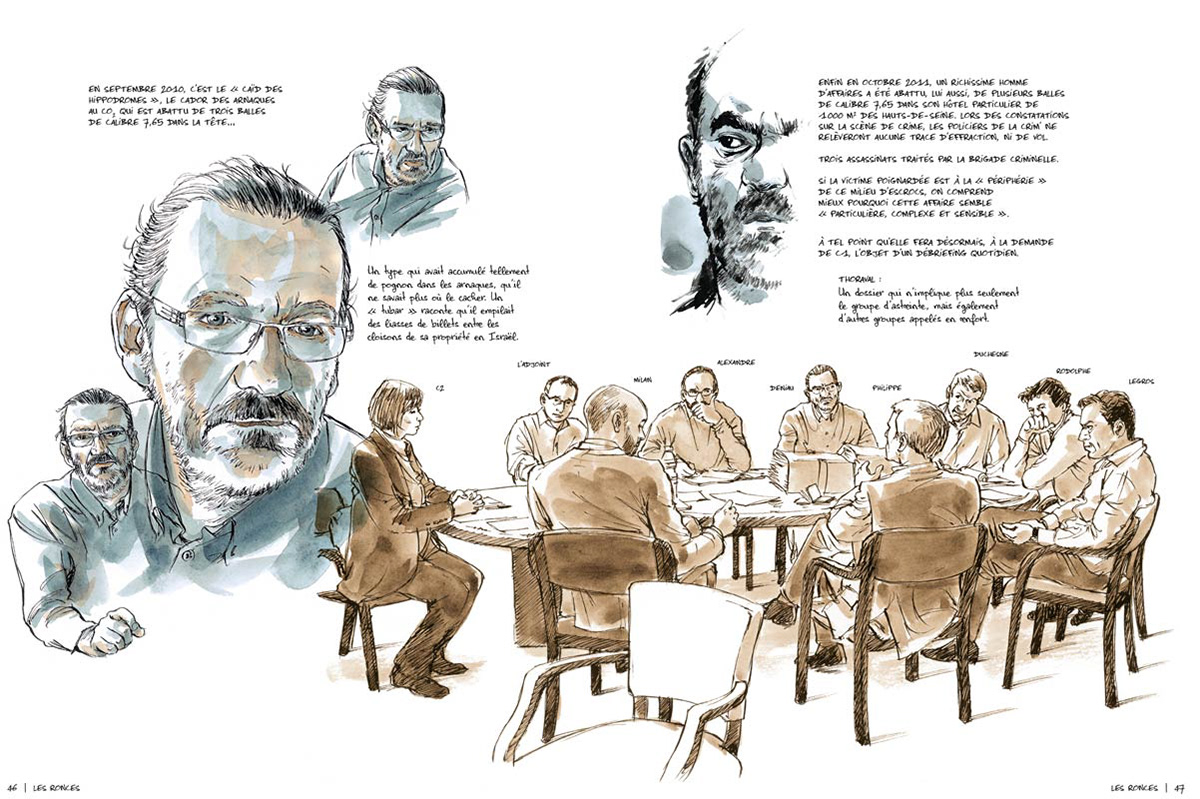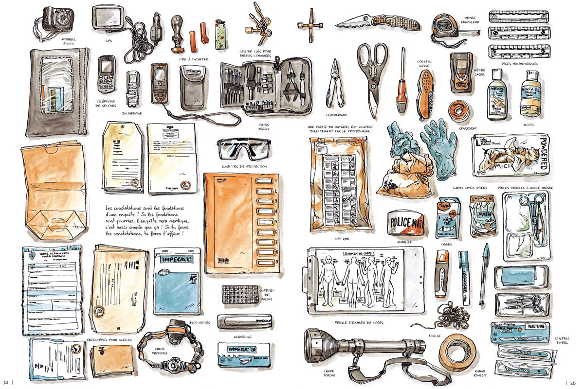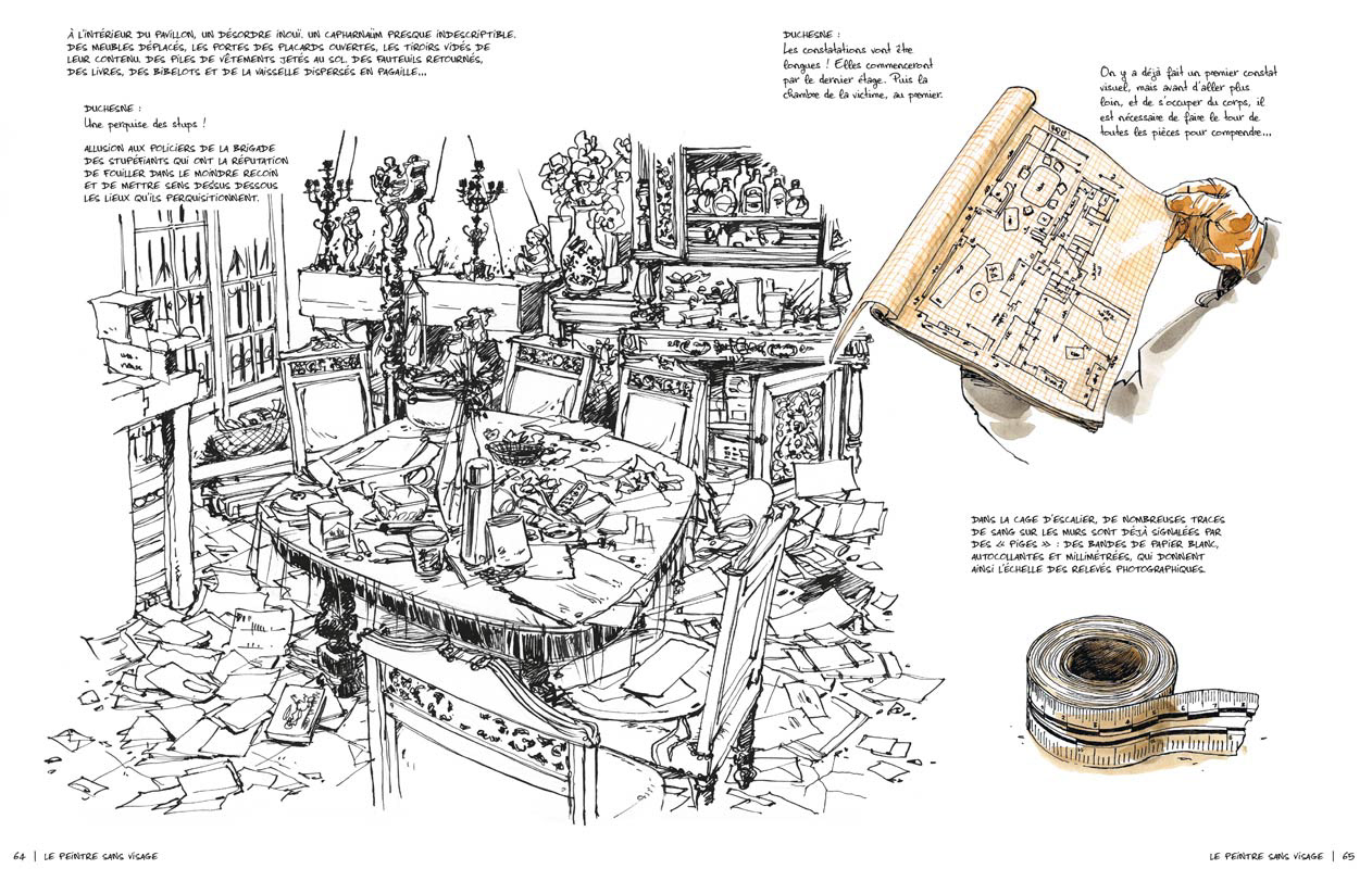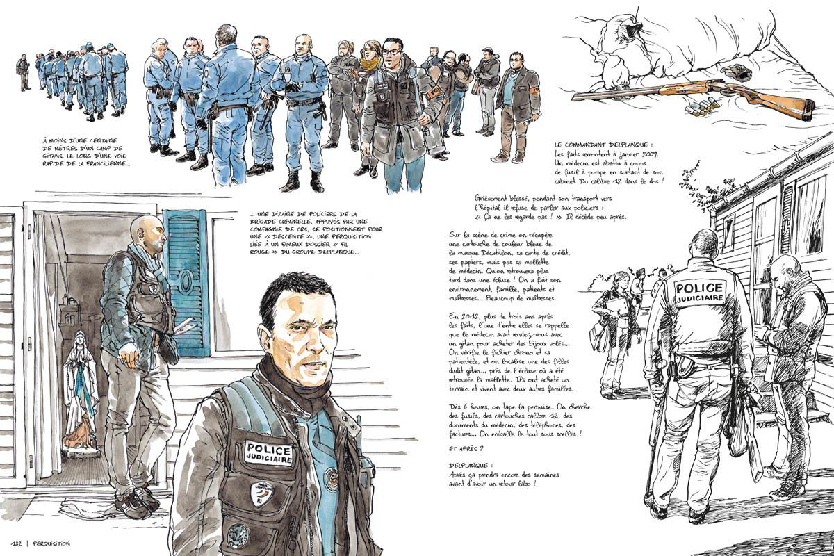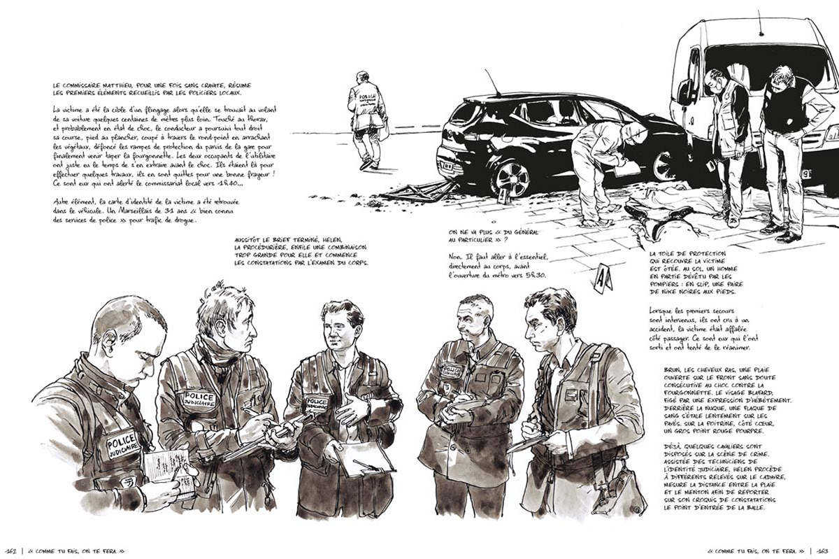 Illustration et mise en page du livre "Brigade criminelle, immersion au cœur du 36 Quai des Orfèvres" avec Raynal Pellicer. 208 pages de reportage dessiné (Éditions de la Martinière)