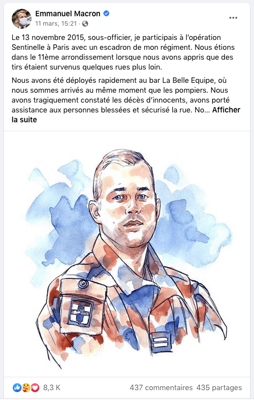 8 portraits de personnes touchées par les attentats et/ou qui luttent contre le terrorisme à l'occasion de la journée d'hommage aux victimes le 11 mars 2021. Publication sur le site de la présidence de la République ainsi que sur les réseaux sociaux : Facebook, Twitter et Instagram du président.
