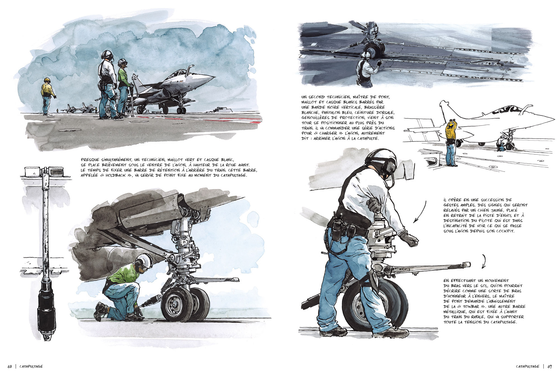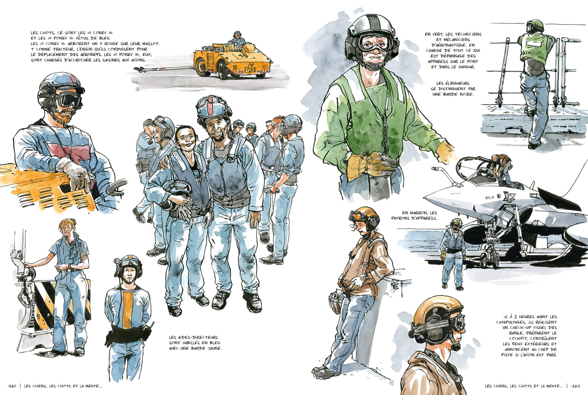 Illustration et mise en page du livre "Le Charles de Gaulle, immersion à bord du porte-avions nucléaire" avec Raynal Pellicer. 192 pages de reportage dessiné (Éditions de la Martinière) .