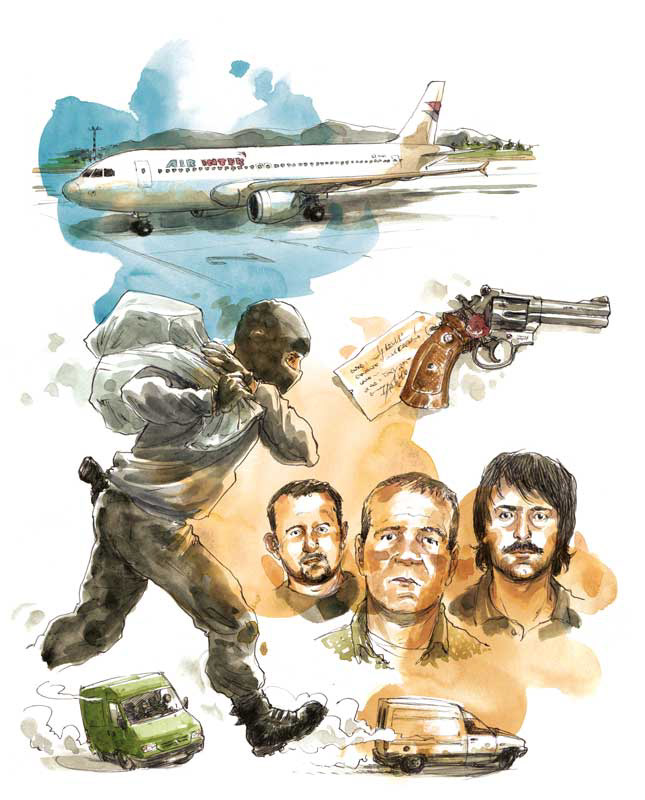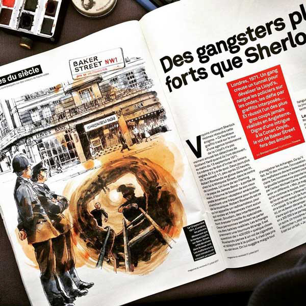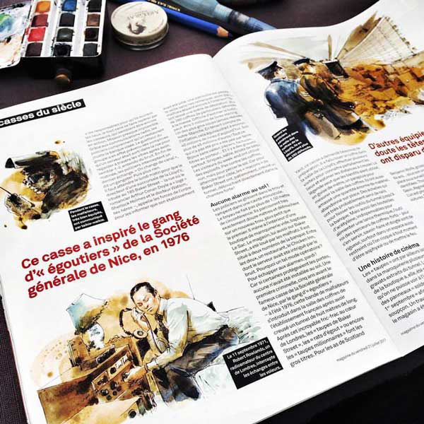 Illustrations de la série d'été "les casses du siècles" du Parisien Magazine (textes de Brendan Kemmet) - 7 épisodes de 4 pages - juillet/août 2017